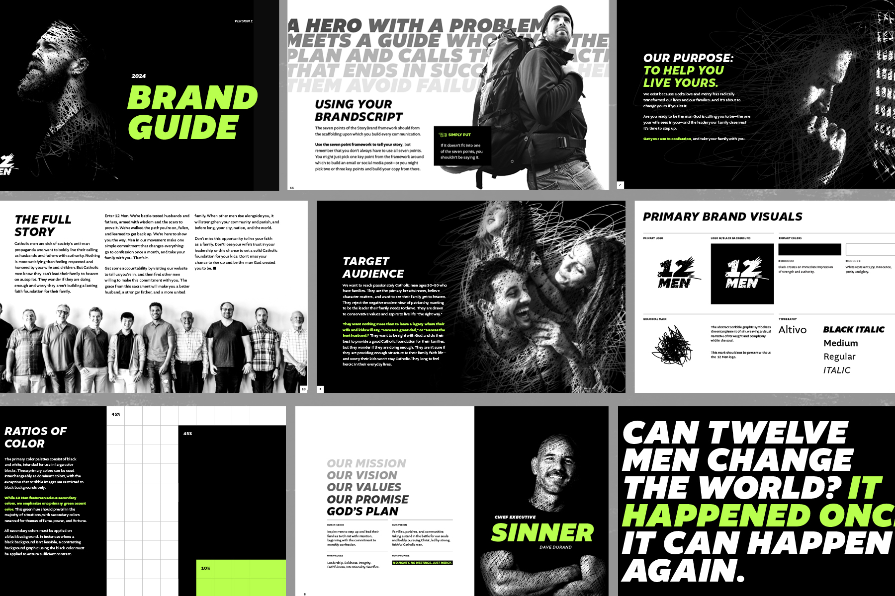 Dave Durand had a clear vision for 12 Men. Our role was to help translate that vision into a clear, unified identity. We wrote the 12 Men Brand Book to define what the movement stands for, how it speaks, and how its story should be told. This clarity allowed 12 Men to resonate with the exact audience it was created to reach and remain consistent as the movement expanded.